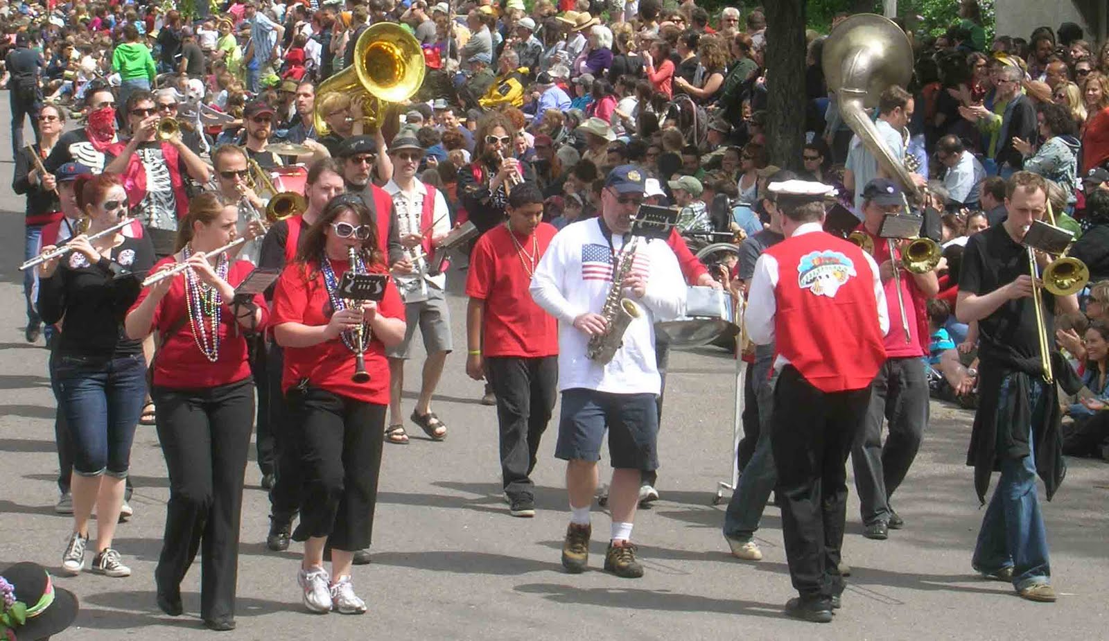 Counting on my fingers, it was the thirty-fifth Heart of the Beast Mayday parade and festival at Powderhorn Park. As always, it was a beautiful, leftist channel of the zeitgeist (despite the little knot of marchers in support of the recently-endorsed Republican candidates for governor and congress -- what were they thinking), improvised by Heart of the Beast Puppet and Mask Theater, and a loving band of amateur volunteers.